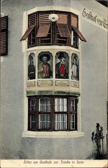 Ak Lans in Tirol, Erker am Gasthof zur Traube