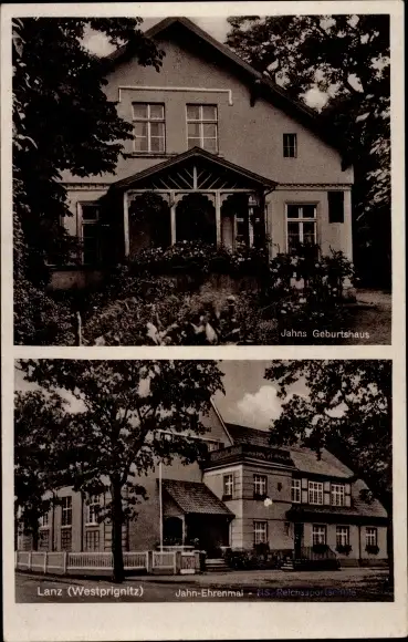 Ak Lanz in der Prignitz, Jahns Geburtshaus, Ehrenmal