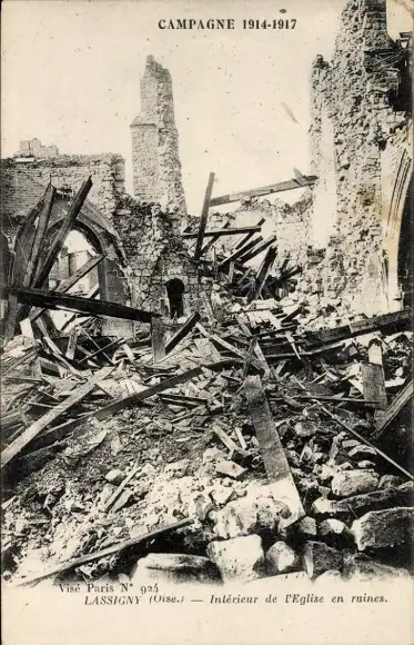Ak Lassigny Oise, Innenraum der zerstörten Kirche