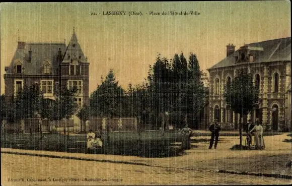 Ak Lassigny Oise, Place de l'Hotel de Ville