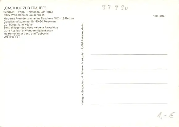 Ak Laudenbach Weikersheim in Tauberfranken Württemberg, Gasthof zur Traube
