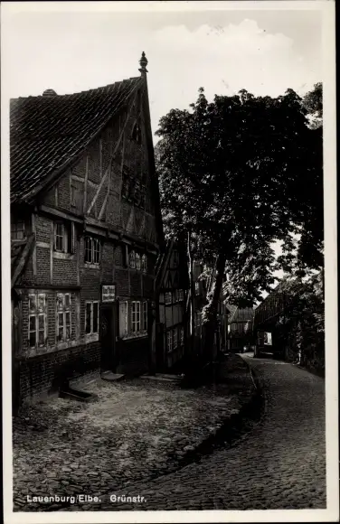 Ak Lauenburg an der Elbe, Partie in der Grünstraße, Fachwerkhäuser