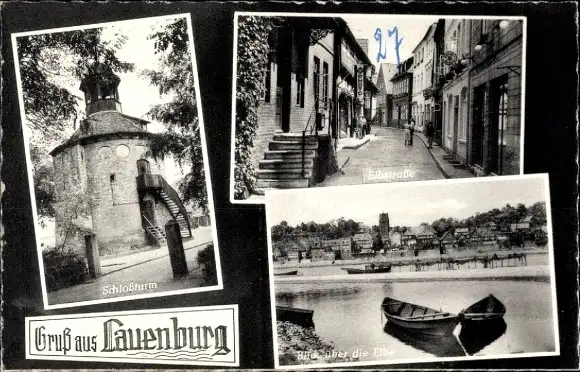 Ak Lauenburg an der Elbe, Schlossturm, Elbstraße, Blick über die Elbe