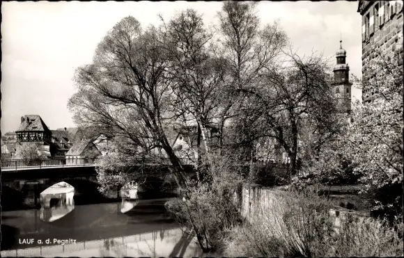 Ak Lauf an der Pegnitz in Mittelfranken Bayern, Teilansicht, Flusspartie