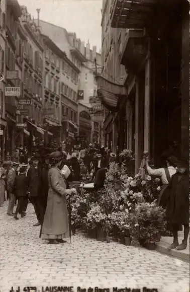 Ak Lausanne Kanton Waadt, Frau auf Markt