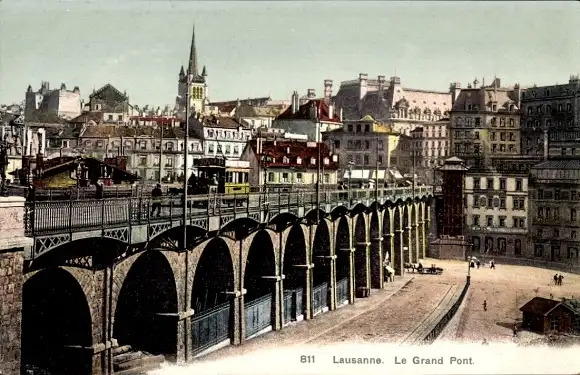 Ak Lausanne Kanton Waadt, Große Brücke, Stadt