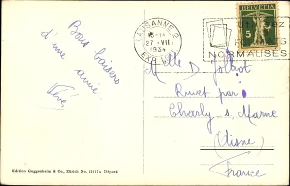 Zustand, siehe Scan, gelaufen, 1934 - ca 14 cm X 9 cm