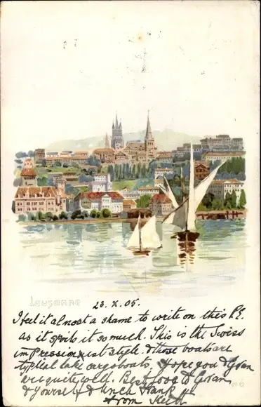 Ak Lausanne Kanton Waadt, Panorama der Stadt, Segelboote