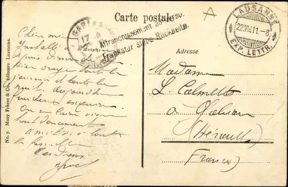 Zustand, siehe Scan, gelaufen, 1911 - ca 14 cm X 9 cm