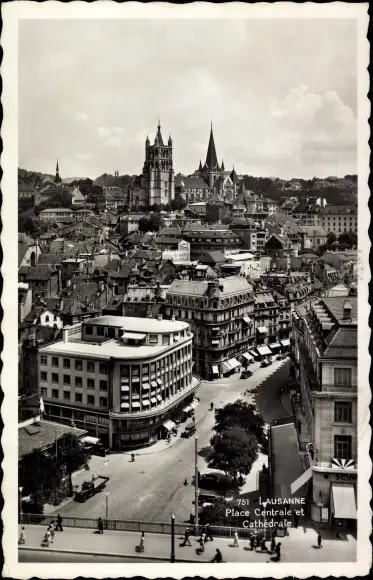 Ak Lausanne Kanton Waadt, Place Centrale et Cathédrale