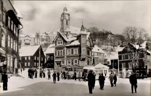 Ak Lauscha in Thüringen, Hüttenplatz, Busse
