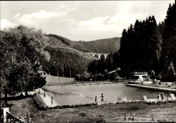 Ansichtskarte, Postkarte, Badeanstalt, Schwimmbad, Freibad, Strandbad, Volksbad