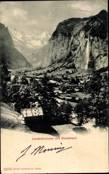 Ak Lauterbrunnen Kt Bern, Total mit Staubbach
