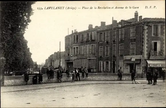 Ak Lavelanet Ariège, Place de la Revolution, Avenue de la Gare