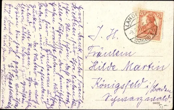 gelaufen 1918, Eckknicke, sonst guter Zustand