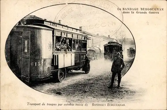 Ak Le Bandage Bergougnan, Transport de troupes par autobus