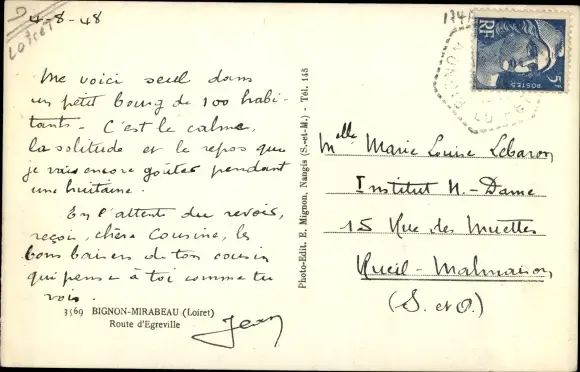 Ak Le Bignon-Mirabeau Loiret, Route d'Egreville