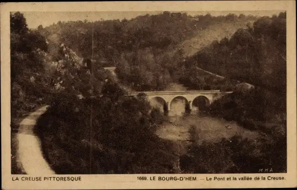 Ak Le Bourg d'Hem Creuse, Le Pont et la vallee de la Creuse