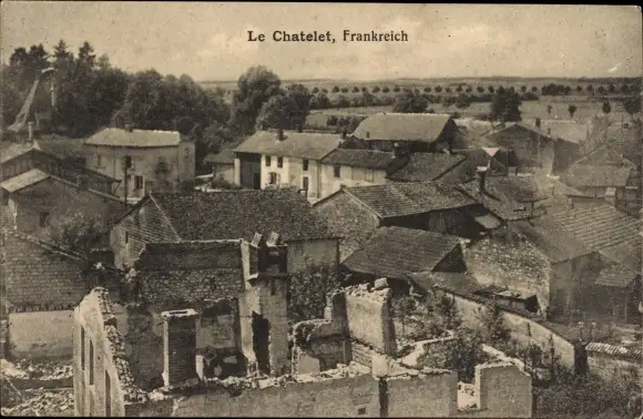 Ak Le Châtelet Cher, Teilansicht, Kriegszerstörung 1. WK