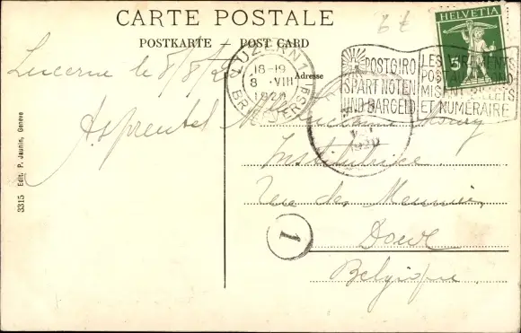 Zustand, siehe Scan, gelaufen, 1920 - ca 14 cm X 9 cm