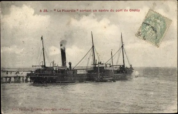 Ak Le Crotoy Somme, La Picardie sortant un navire du port