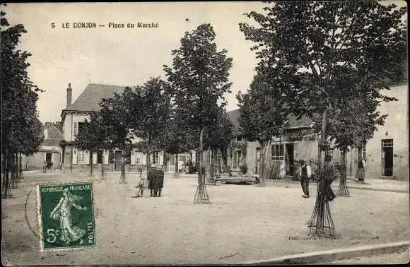 Ak Le Donjon Allier, Place du Marché, arbres