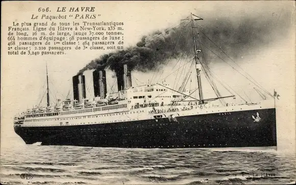 Ak Le Havre Seine Maritime, Le Paquebot Paris, Dampfer, CGT, French Line