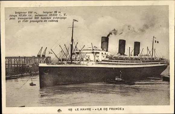 Ak Le Havre Seine Maritime, Paquebot Ile de France, CGT, French Line