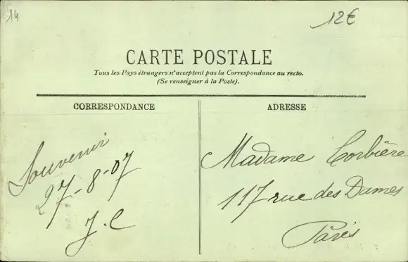 Zustand siehe Scan, 1907, gelaufen - ca 14 cm X 9 cm