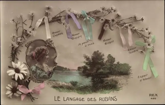 Ak Le Langage des Rubans, Amour Candide, Amour Sincere, Je pense a vous, Bänder, Frauenportrait