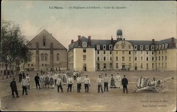 Ak Le Mans Sarthe, 26 Regiment d'Artillerie, Cour de Quartier