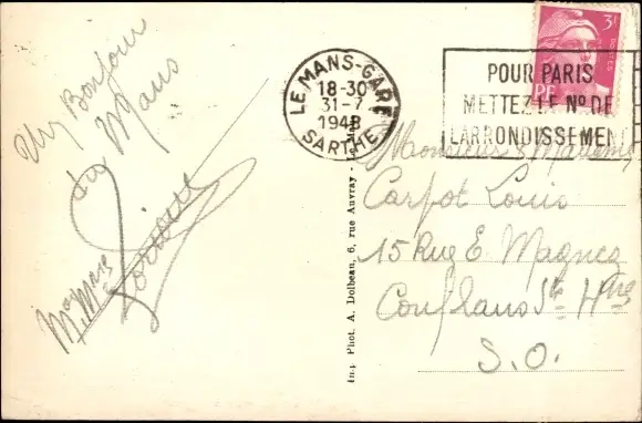 Zustand, siehe Scan, gelaufen, 1948 - ca 14 cm X 9 cm