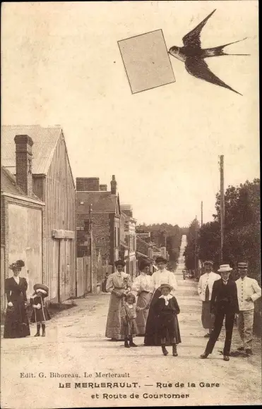 Ak Le Merlerault Orne, Rue de la Gare et Route de Courtomer
