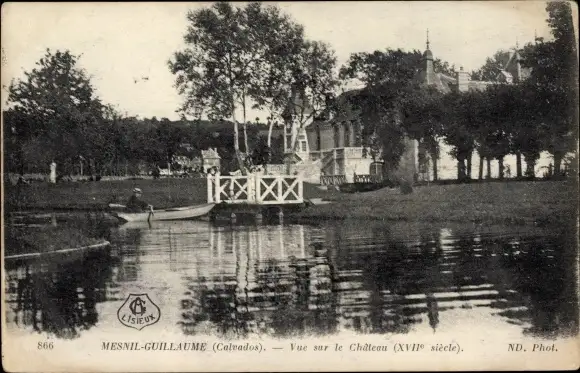 Ak Le Mesnil Guillaume Calvados, vue sur le Château