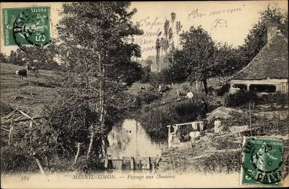 Ak Le Mesnil Simon Calvados, Paysage aux Douaires