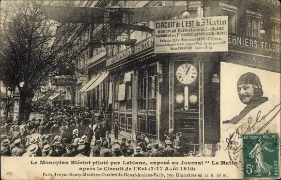 Ak Le Monoplan Blériot piloté par Leblanc, exposé au Journal Le Matin