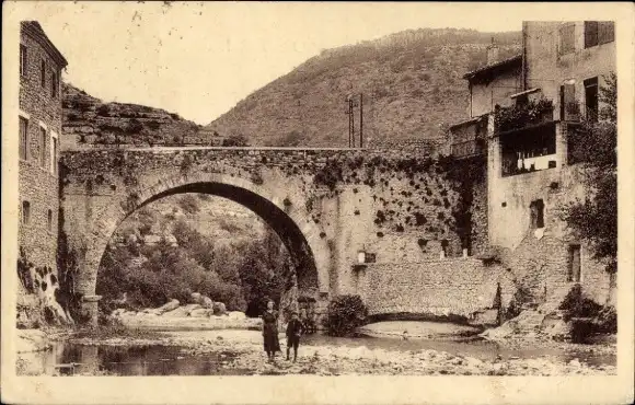 Ak Le Pouzin Ardèche, Pont Romain, Flussbett