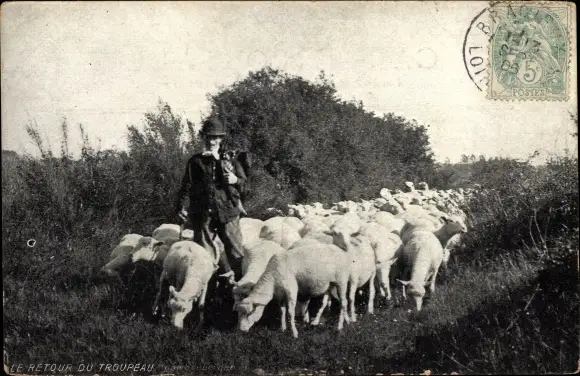 Ak Le Retour du Troupeau, Schäfer mit Schafherde