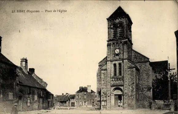Ak Le Ribay Mayenne, Place de l'Eglise
