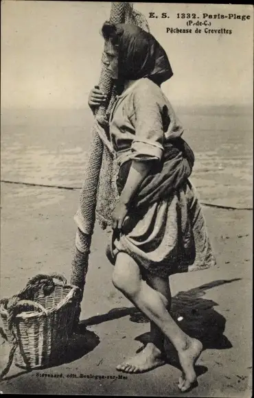 Ak Le Touquet Paris Plage Pas de Calais, Pecheuse de Crevettes