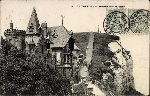 Ak Le Tréport Seine Maritime, Escalier des Falaises