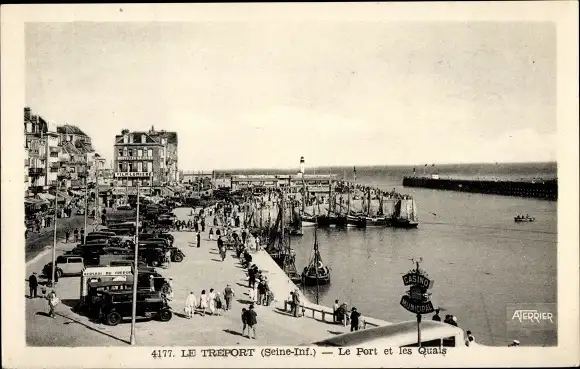 Ak Le Tréport Seine Maritime, Port, Quais, Autos