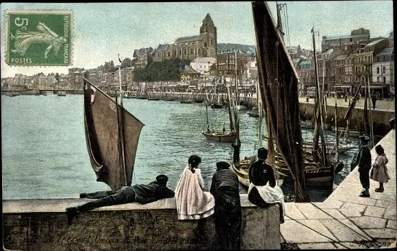 Ak Le Tréport Seine Maritime, Quai, Promenade, Segelboote, Häuser