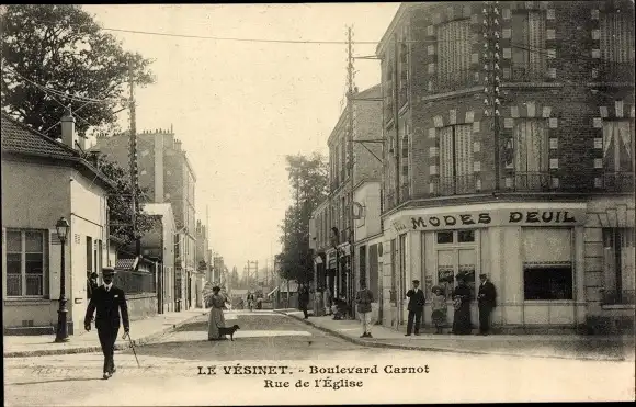 Ak Le Vésinet Yvelines, Boulevard Carnot, Rue de l'Eglise, Modes Deuil