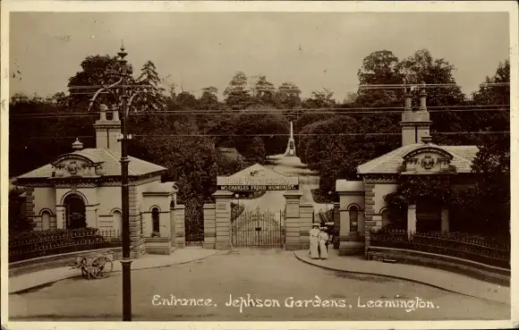 Ak Leamington Spa Warwickshire England, Jephson Gardens, Eingang