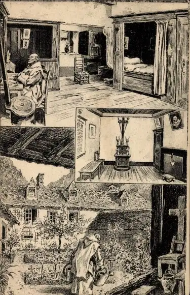 Ak Leben eines Geistlichen, Gartenarbeit, Arbeitszimmer, Wohnstube, Mönch, Kloster
