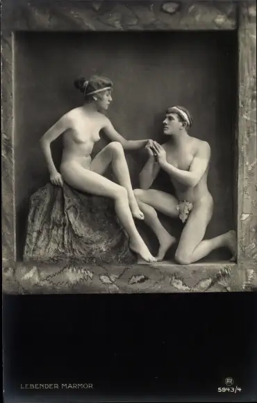 Ak Lebender Marmor, Frauenakt, Männerakt, Liebespaar, RPH 5943/4