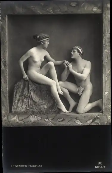 Ak Lebender Marmor, Frauenakt, Männerakt, Liebespaar, RPH 5943/4