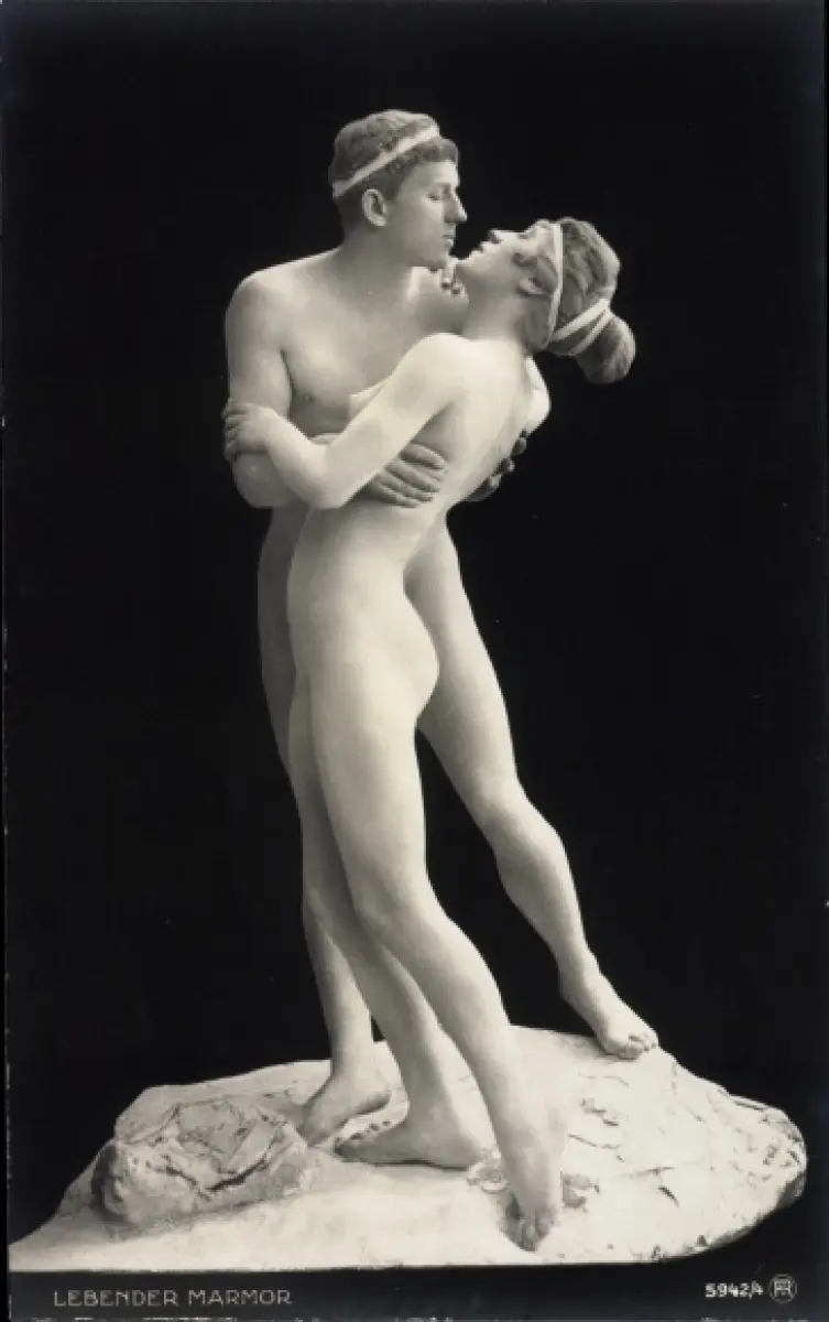 Ak Lebender Marmor, Frauenakt, Männerakt, Nacktanzug, Busen, RPH 5942 4