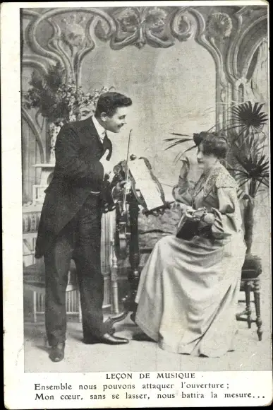 Ak Lecon de Musique, Musiklehrer, Frau, Geige